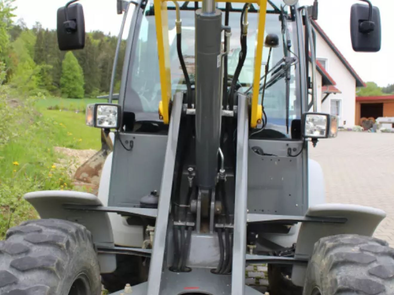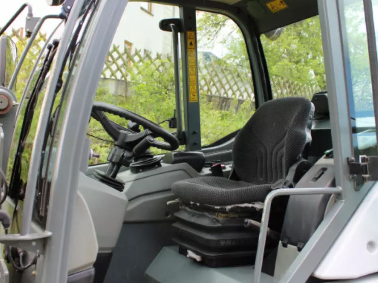 Die Lenkung: Die Kramer Allradlenkung ist durch seinen 2×40° Lenkwinkel besonders wendig. Komfortable Kabine mit großflächiger Verglasung für beste Rundumsicht.